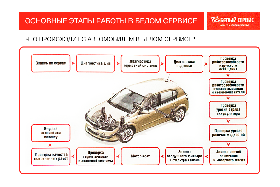 Нашим клиентам предоставляется диагностическая карта c подробностями проведенного ТО и фирменная сервисная книжка Белый Сервис. На все работы и использованные запчасти распространяется гарантия.